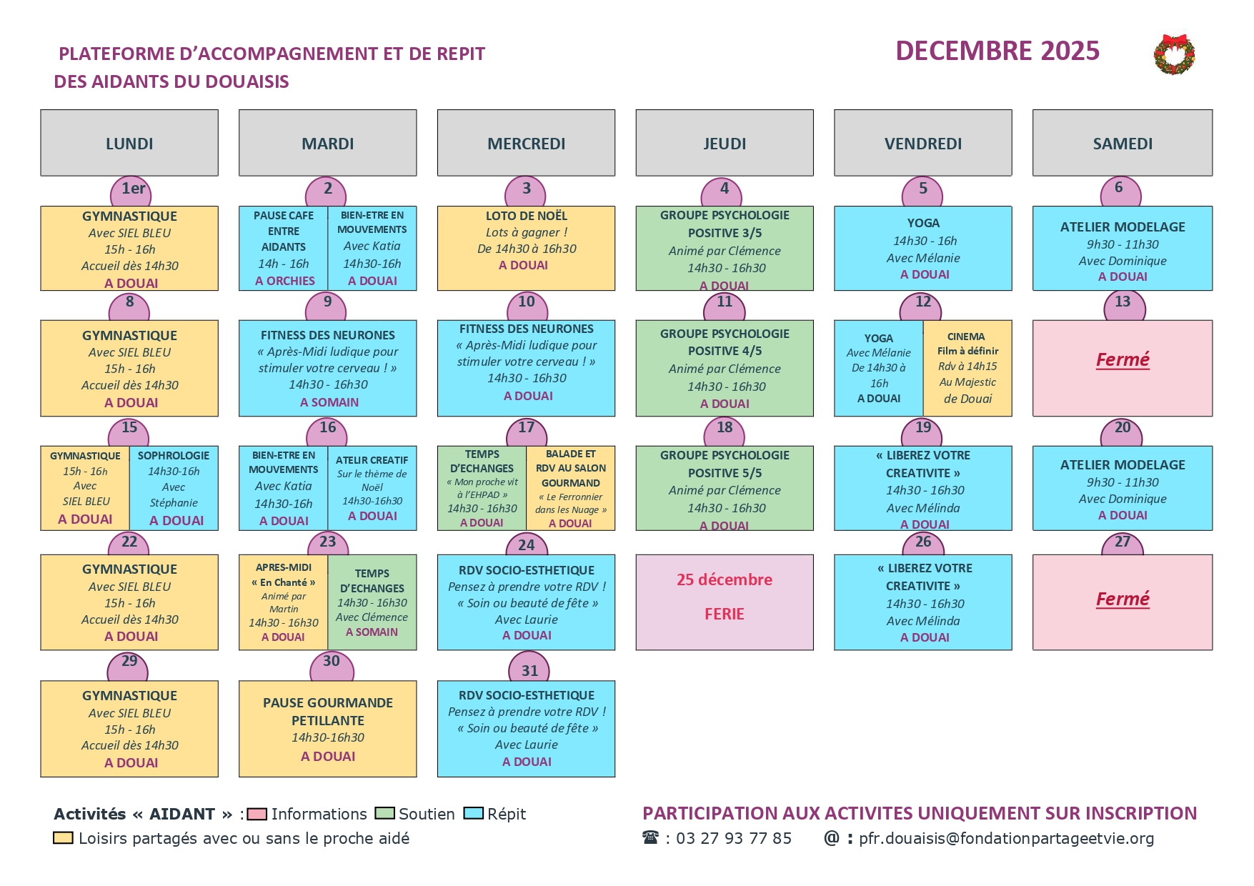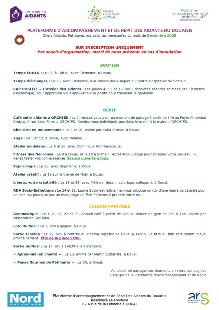 Posted on 11/12/2025 thierry strbik Programme d’activités Décembre 2025 Plateforme d’accompagnement et de Répit des Aidants du Douaisis