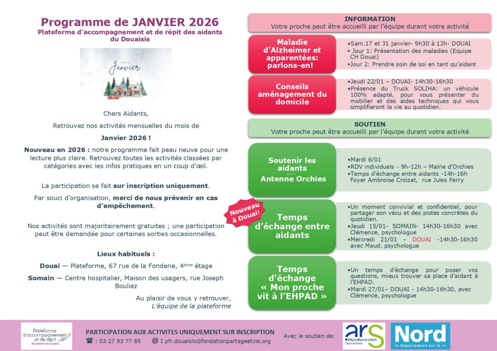 • Programme d’activités Janvier 2026 Plateforme d’accompagnement et de Répit des Aidants du Douaisis
